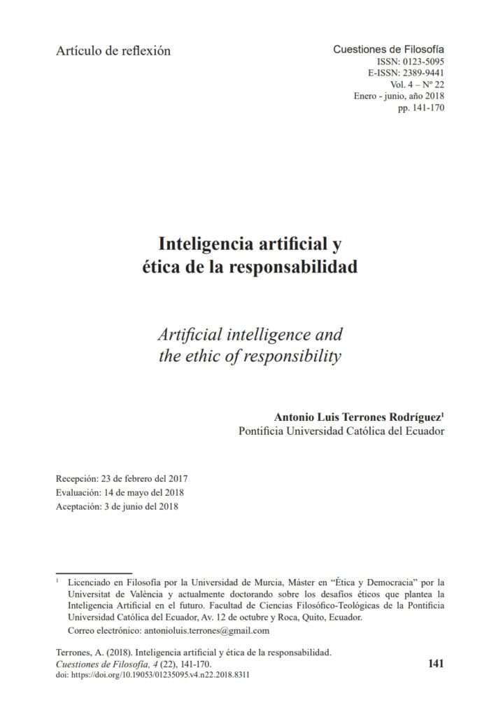 Inteligencia artificial, ética, responsabilidad, riegos, tecno-logía, desafíos.