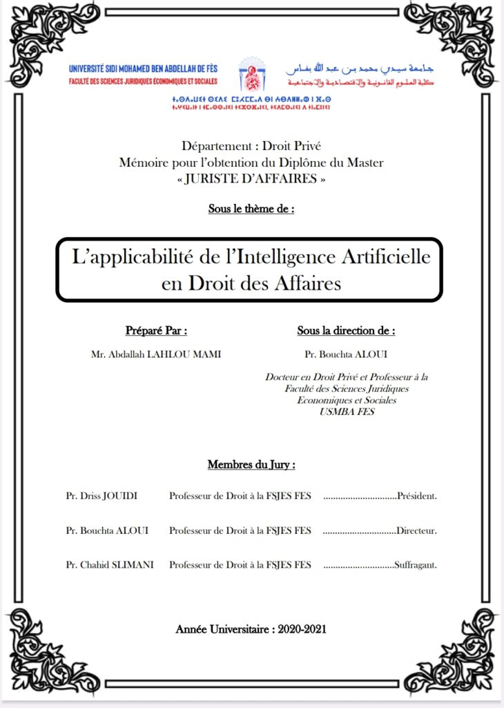 Dès lors, notre recherche porte sur la possibilité d’appliquer l’intelligence artificielle en droit des affaires ; notamment en droit des contrats et en droit de la concurrence.