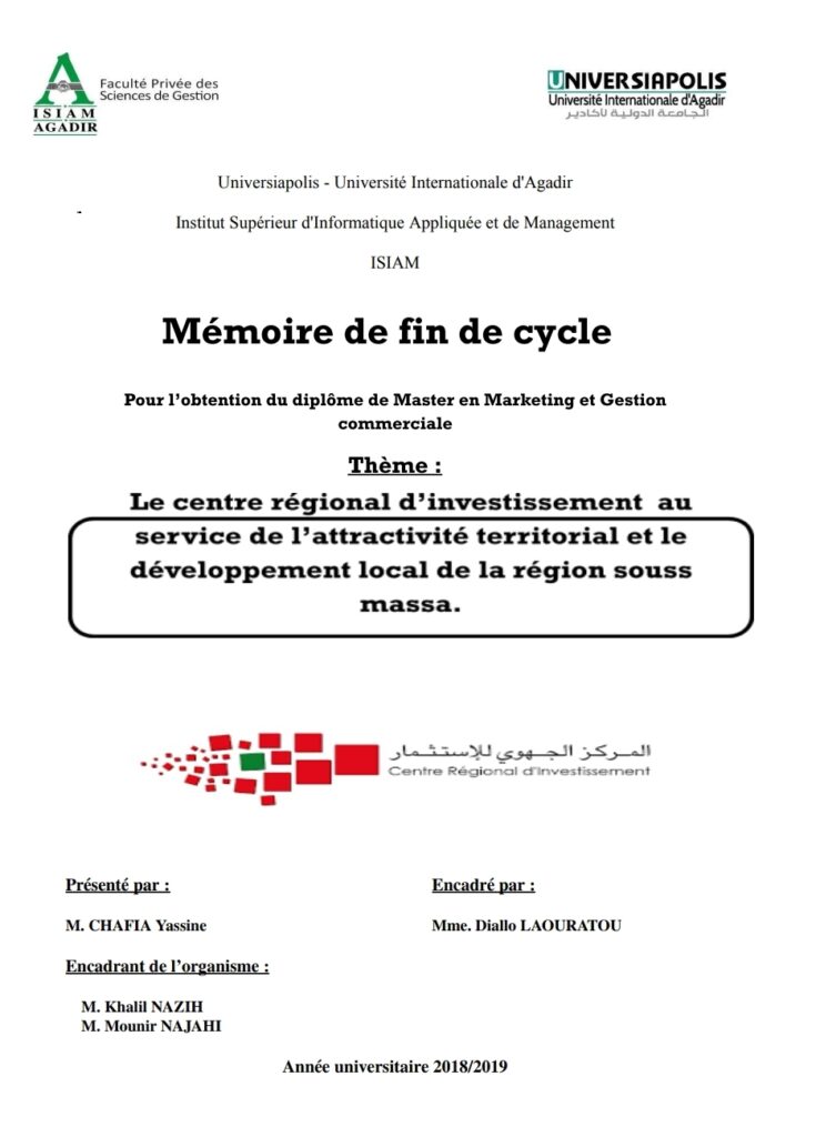 Le sujet des territoires est un phénomène qui est très important à savoir que notre spécialité est marketing et gestion commercial il est tellement naturel de prendre cette responsabilité et s’approfondir au niveau de notre recherche.